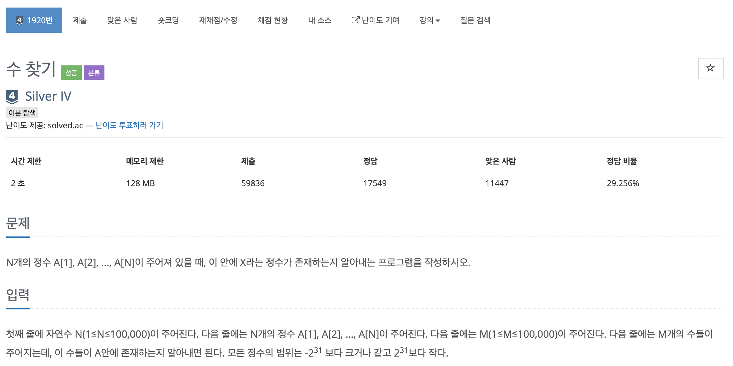 https://www.acmicpc.net/problem/1920