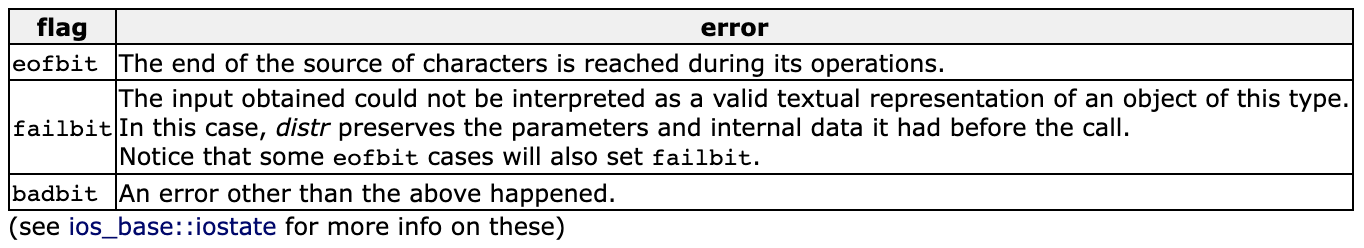 flag의 종류로는 eofbit, failbit, badbit 가 있다.