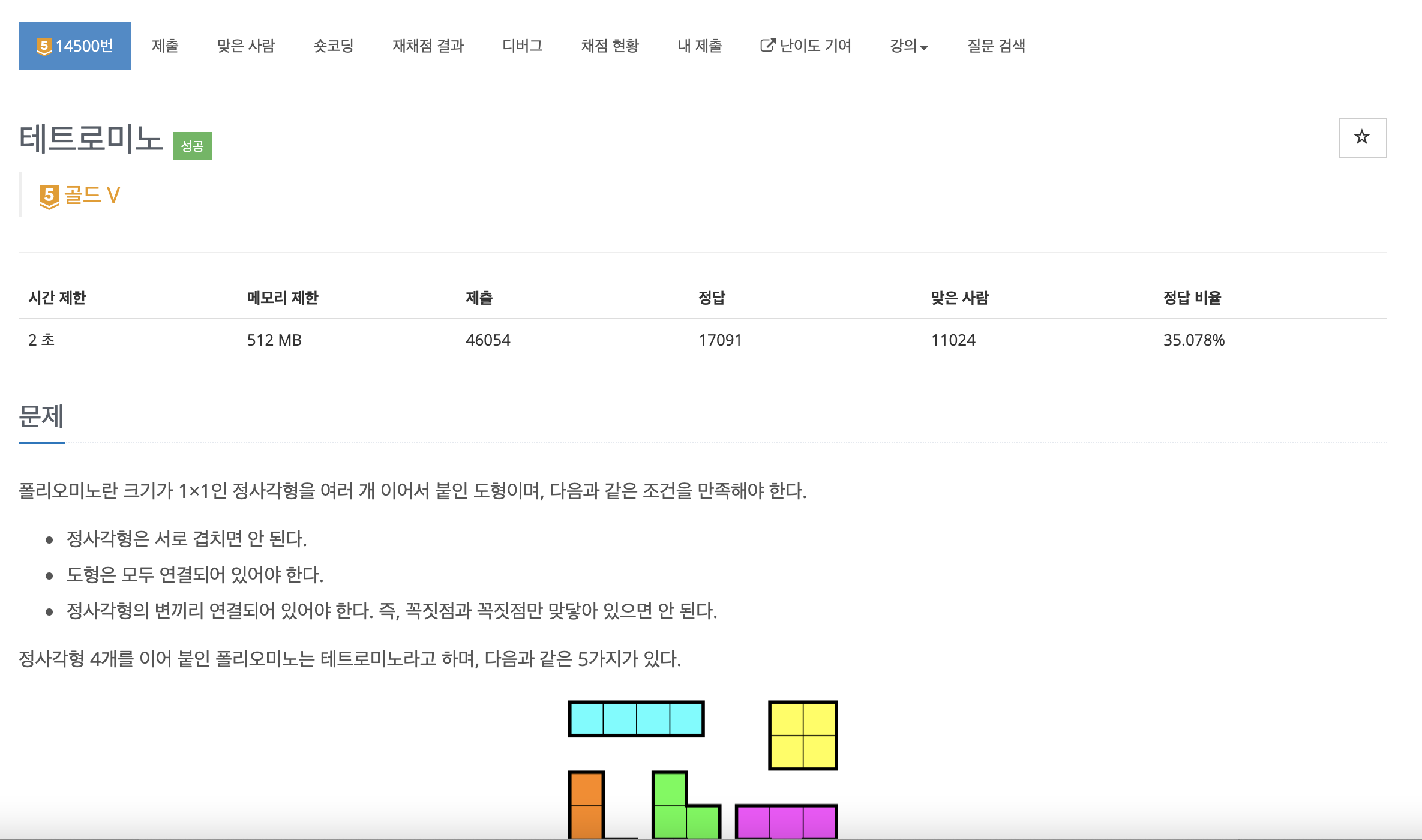 사진에 보이는 5개의 테트로미노를 회전, 대칭 시켜서 점수가 적혀있는 판에 놓았을 때