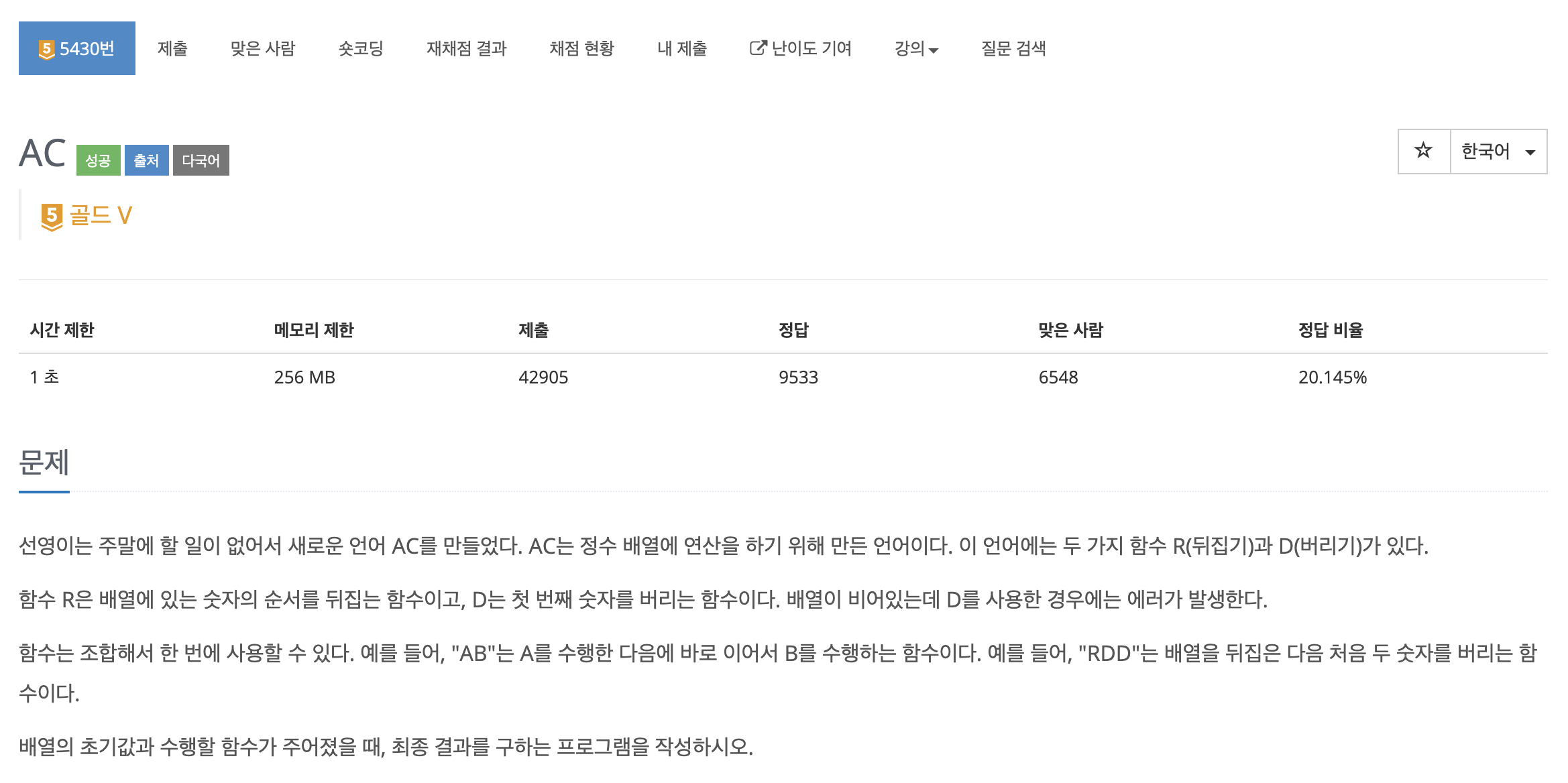 이 문제의 포인트는 선영이가 주말에 할 일이 없어서 새로운 언어 AC를 만들었다는 것.