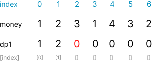 dp1은 [0]이 money[0]이고 (첫집을 무조건 포함하기 때문)