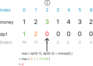 dp1[i] = max(dp1[i-1] , dp1[i-2]+money[i])