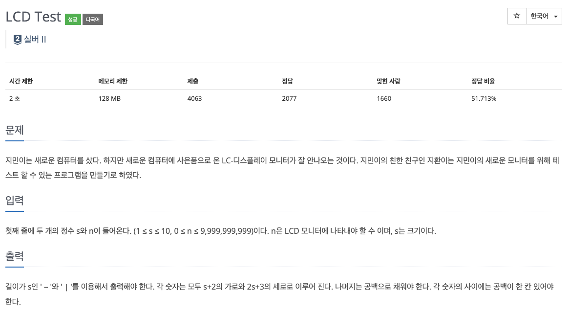 the first input number (= s) indicates the length of each line that makes up the number display.