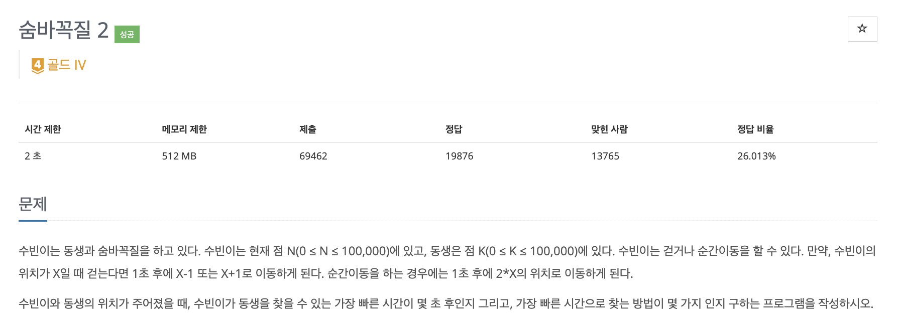 N에서 K까지 가는데 -1, +1, *2 경우로 이동할 수 있다. 이때 가장 빠르게 도달하는 시간과 그에 대한 경우의 수를 구하는 문제