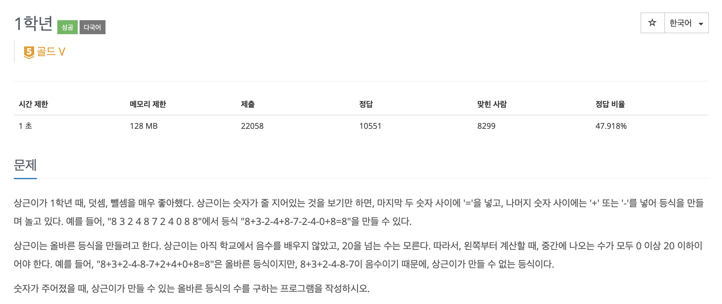 숫자들의 배열을 보고, 그 숫자들 사이를 덧셈뺄셈으로 채워서 맨 마지막 숫자를 만드는 등식의 개수를 출력하는 문제
