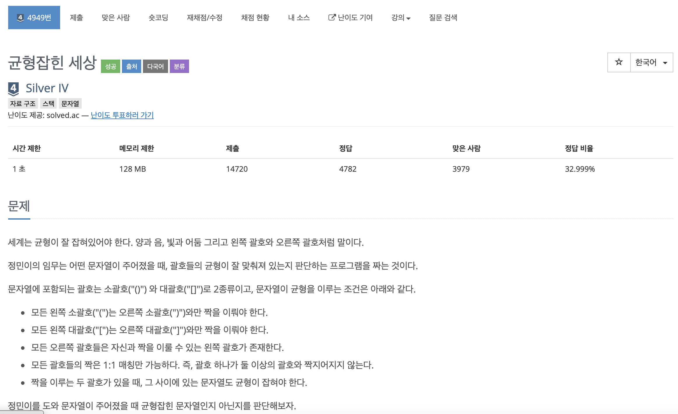 https://www.acmicpc.net/problem/4949
