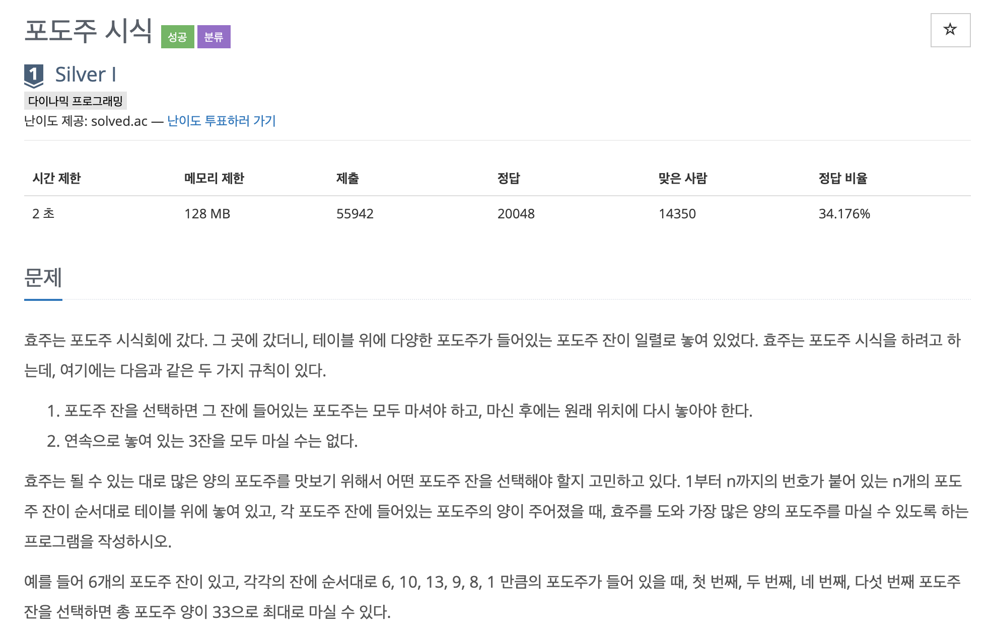 https://www.acmicpc.net/problem/2156
