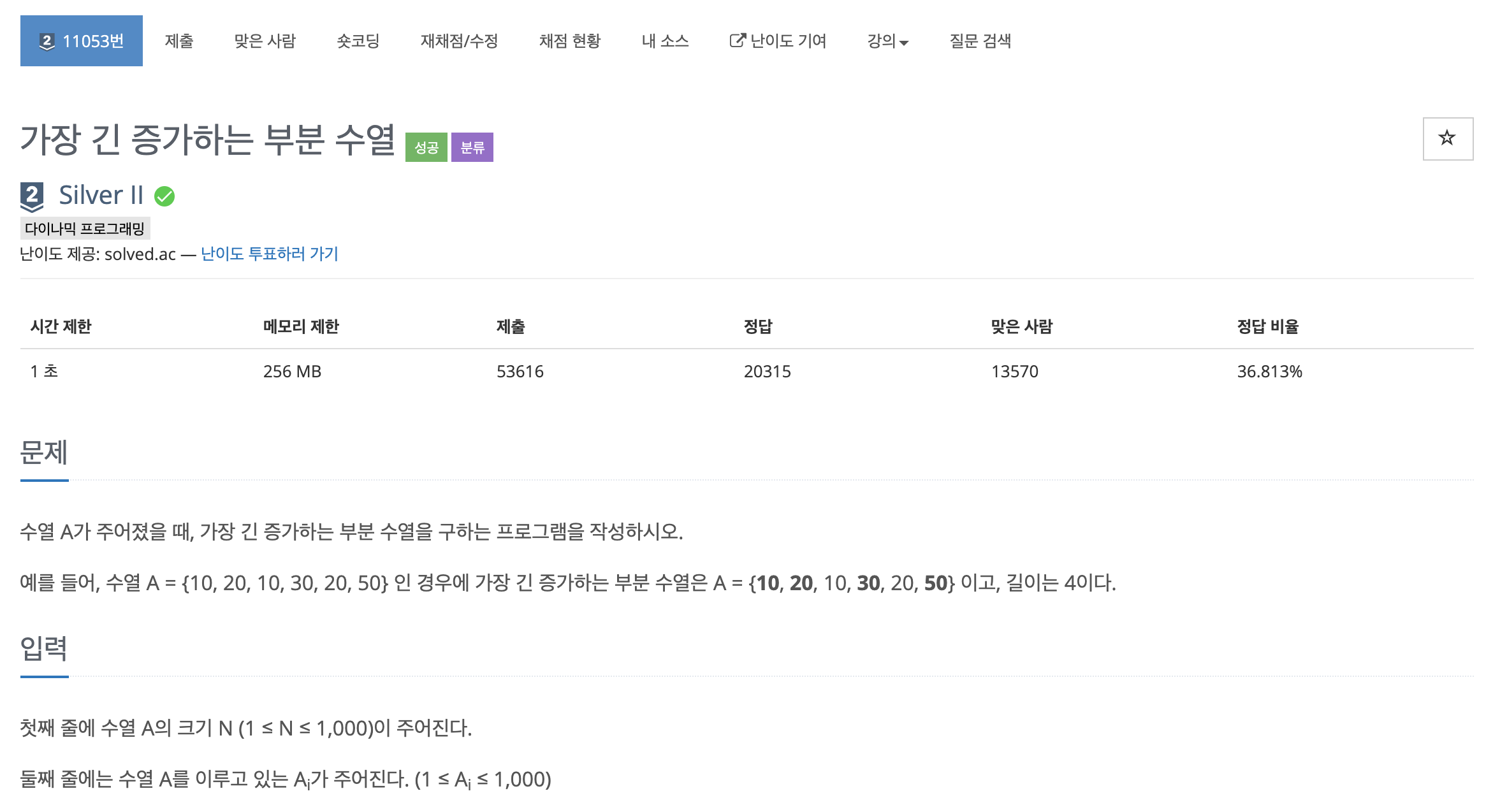 https://www.acmicpc.net/problem/11053