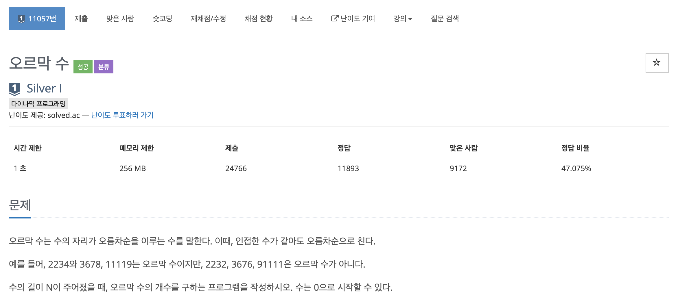 11057번: 오르막 수