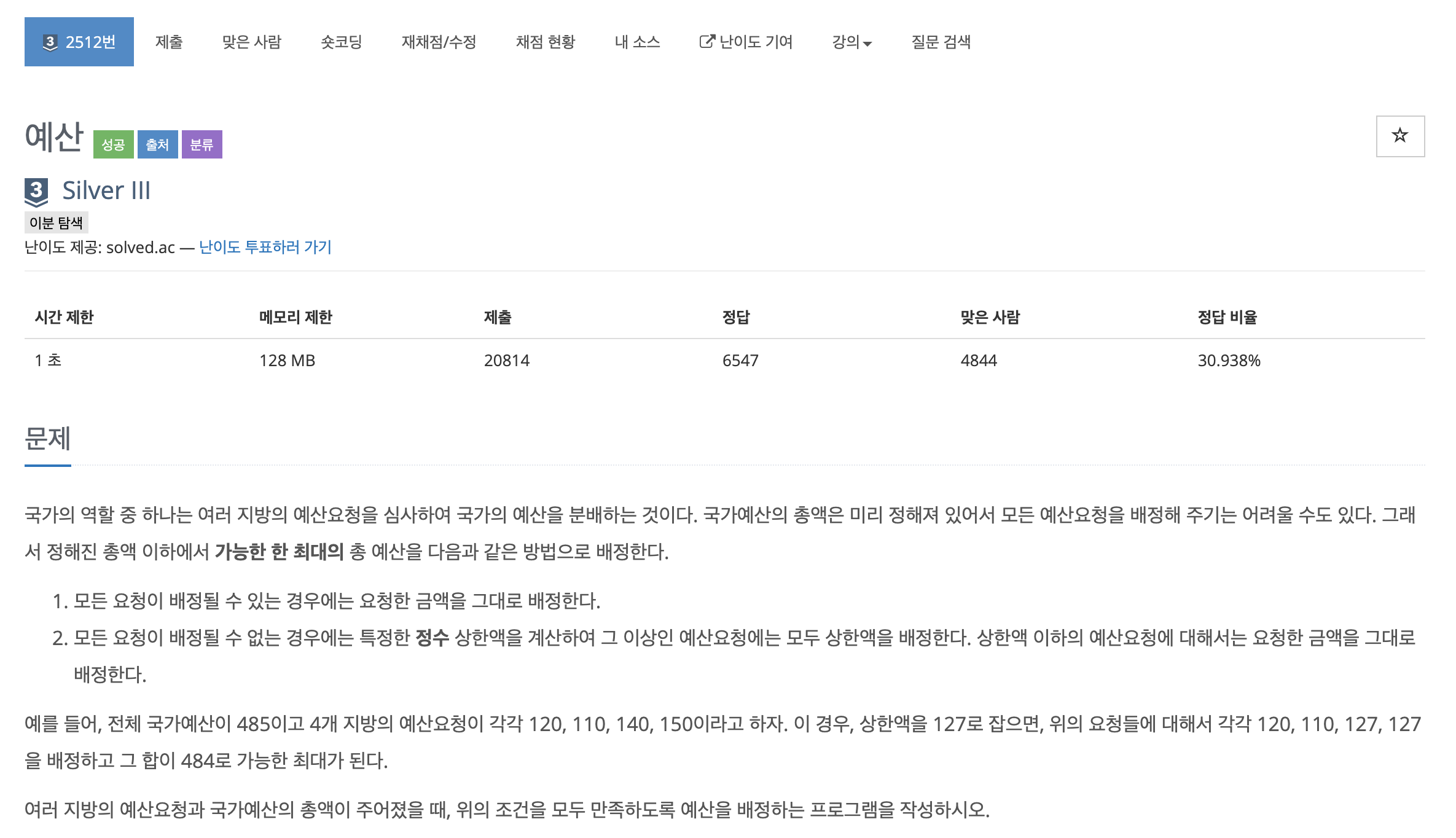 2512번: 예산
