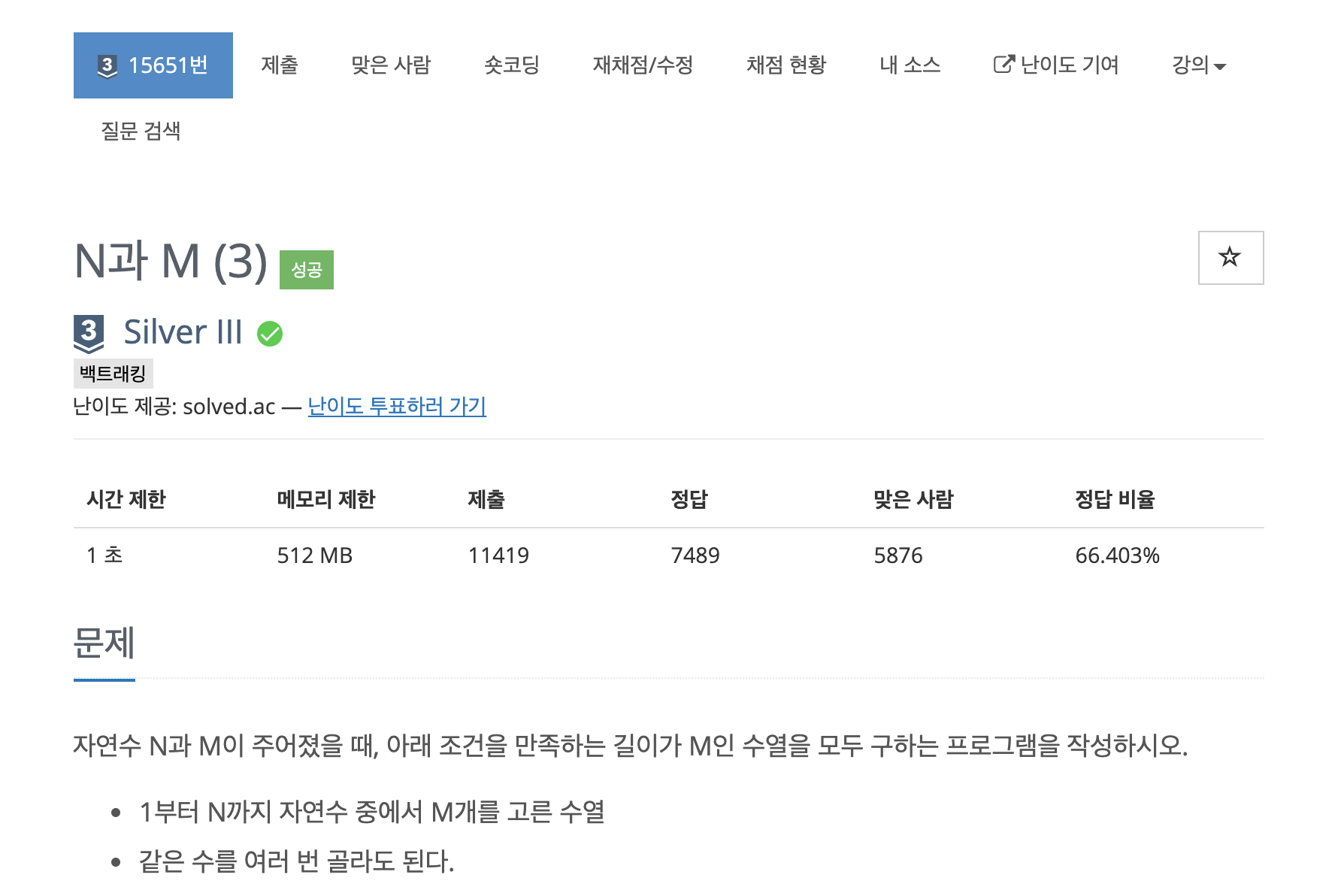https://www.acmicpc.net/problem/15651