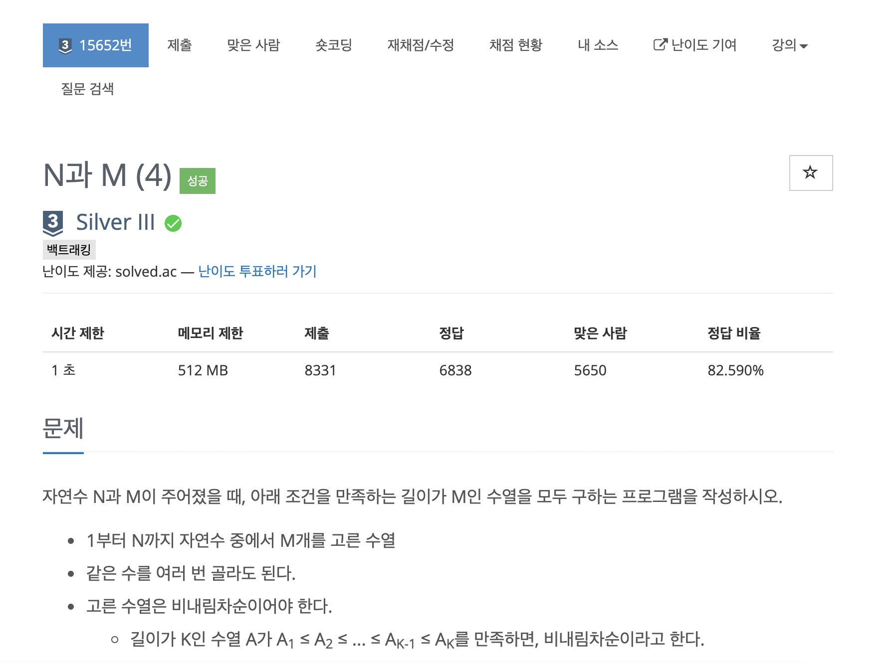 [백준 15652] 알고리즘 18일차 : N과 M(4)