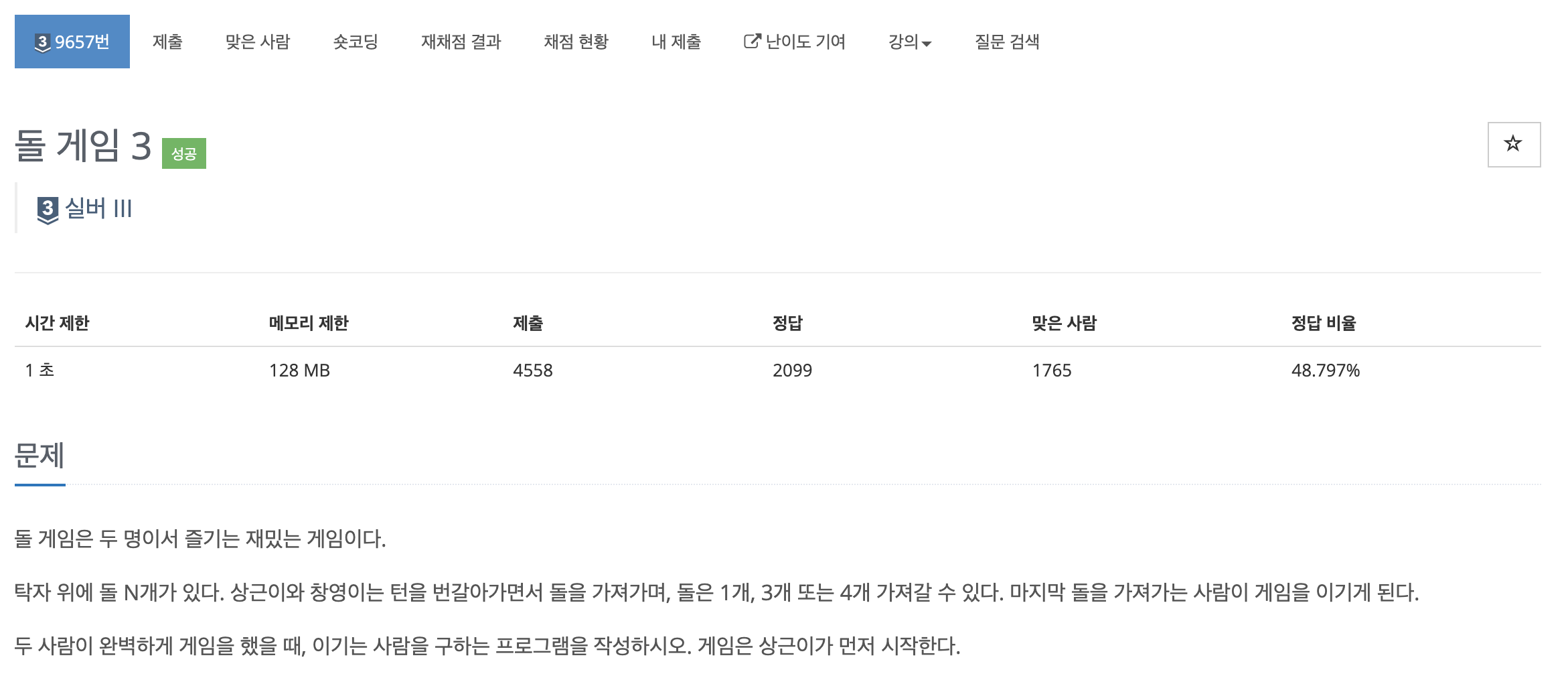 9657번: 돌 게임 3
