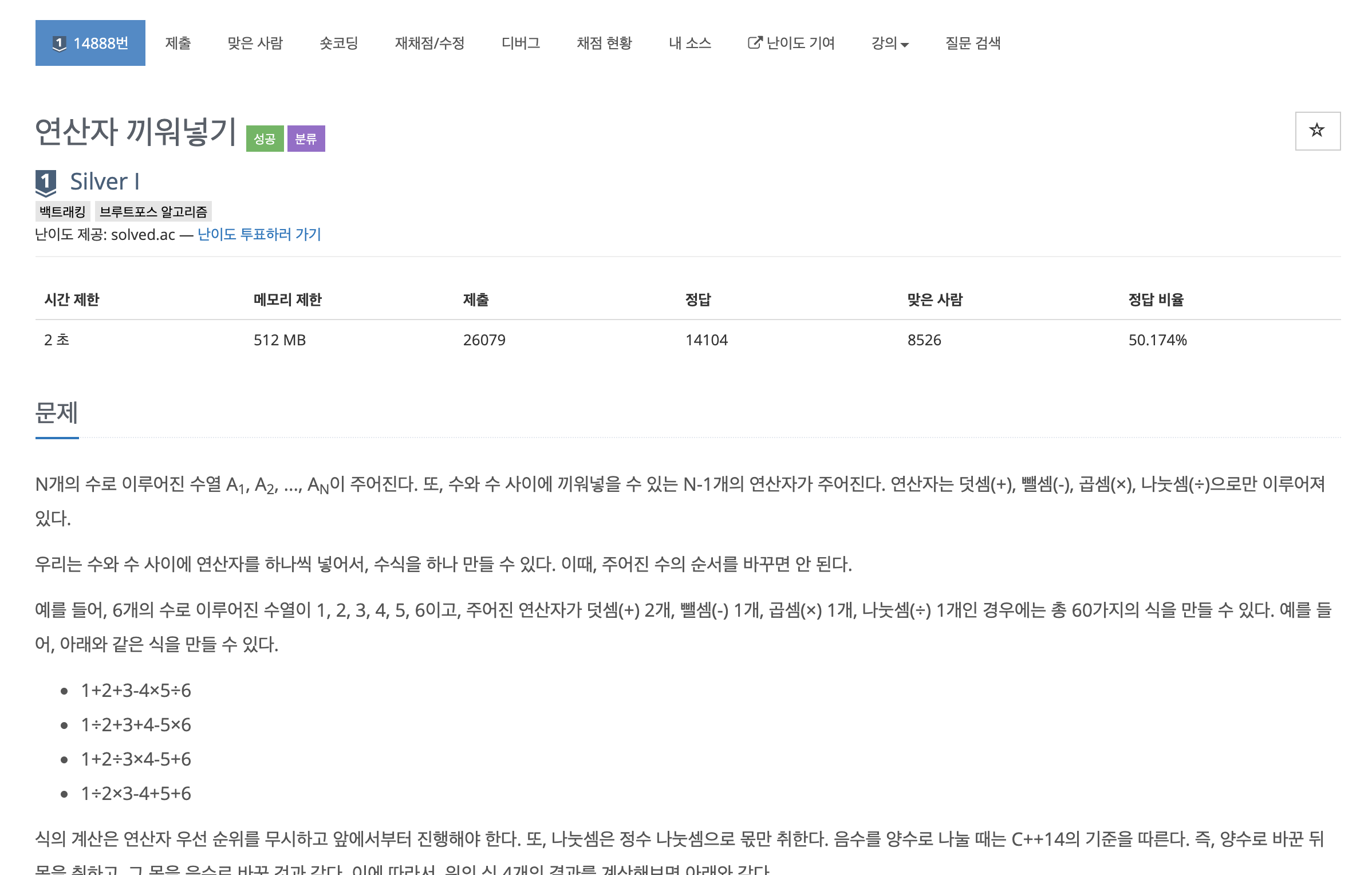 [백준 14888] 알고리즘 20일차 : 연산자 끼워넣기