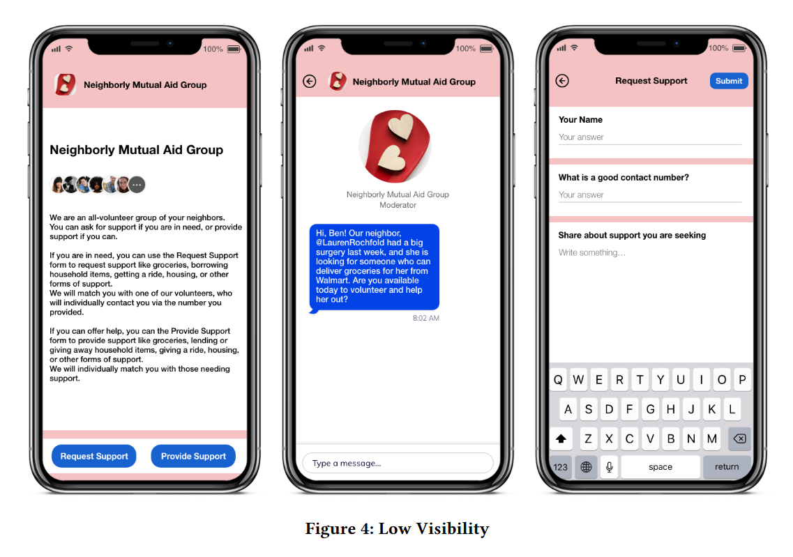 (3) public direct requests (high visibility) : 중재자 없이 도움을 요청하는 사람이 직접 포스팅, 제공자가 댓글을 달아서 직접 연락