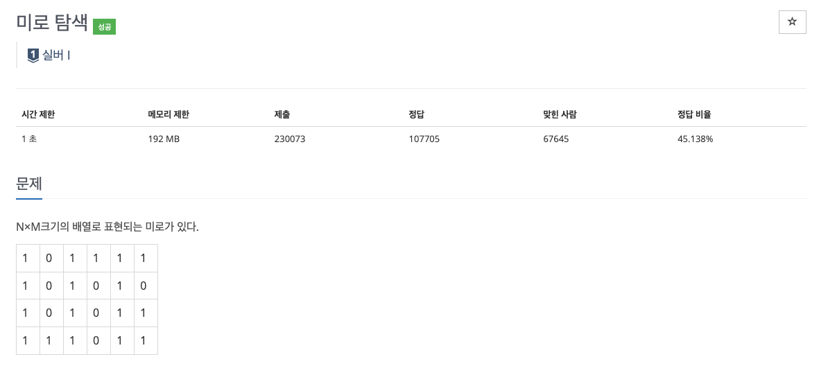 1,1칸에서 N,M칸으로 이동하는데 거쳐야할 최소 칸 수 구하는 문제