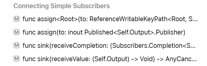 바로 sink와 assign이 애플이 제공하는 Publisher를 쉽게 구독(Subscribe)할 수 있는 방법입니다.