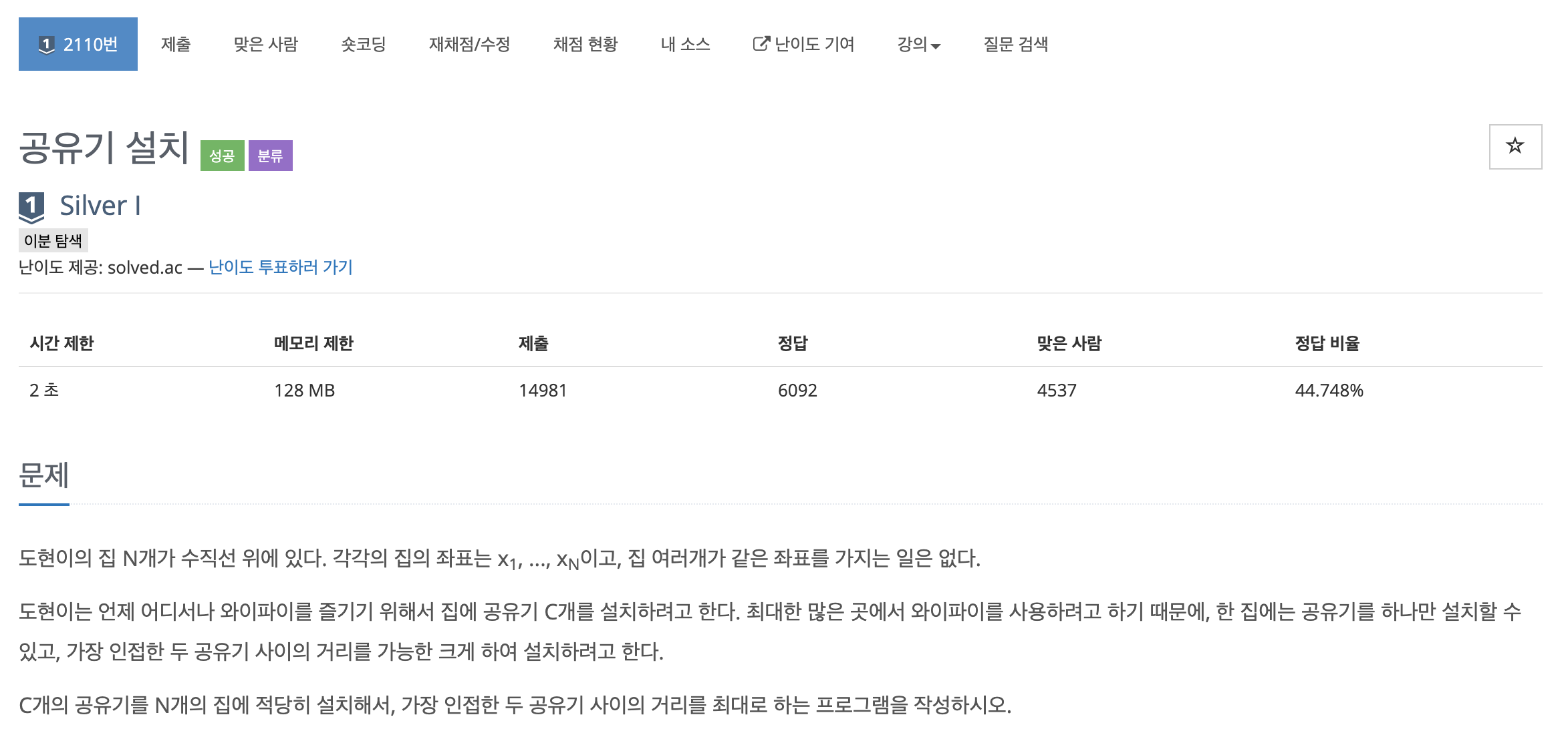 2110번: 공유기 설치