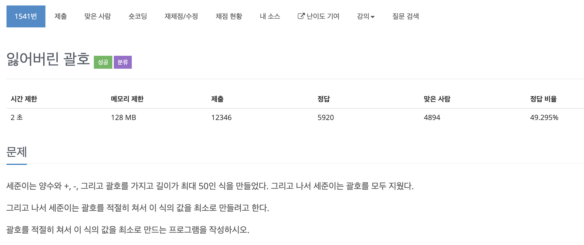 [백준 1541] 알고리즘 16일차 : 잃어버린 괄호 (python)