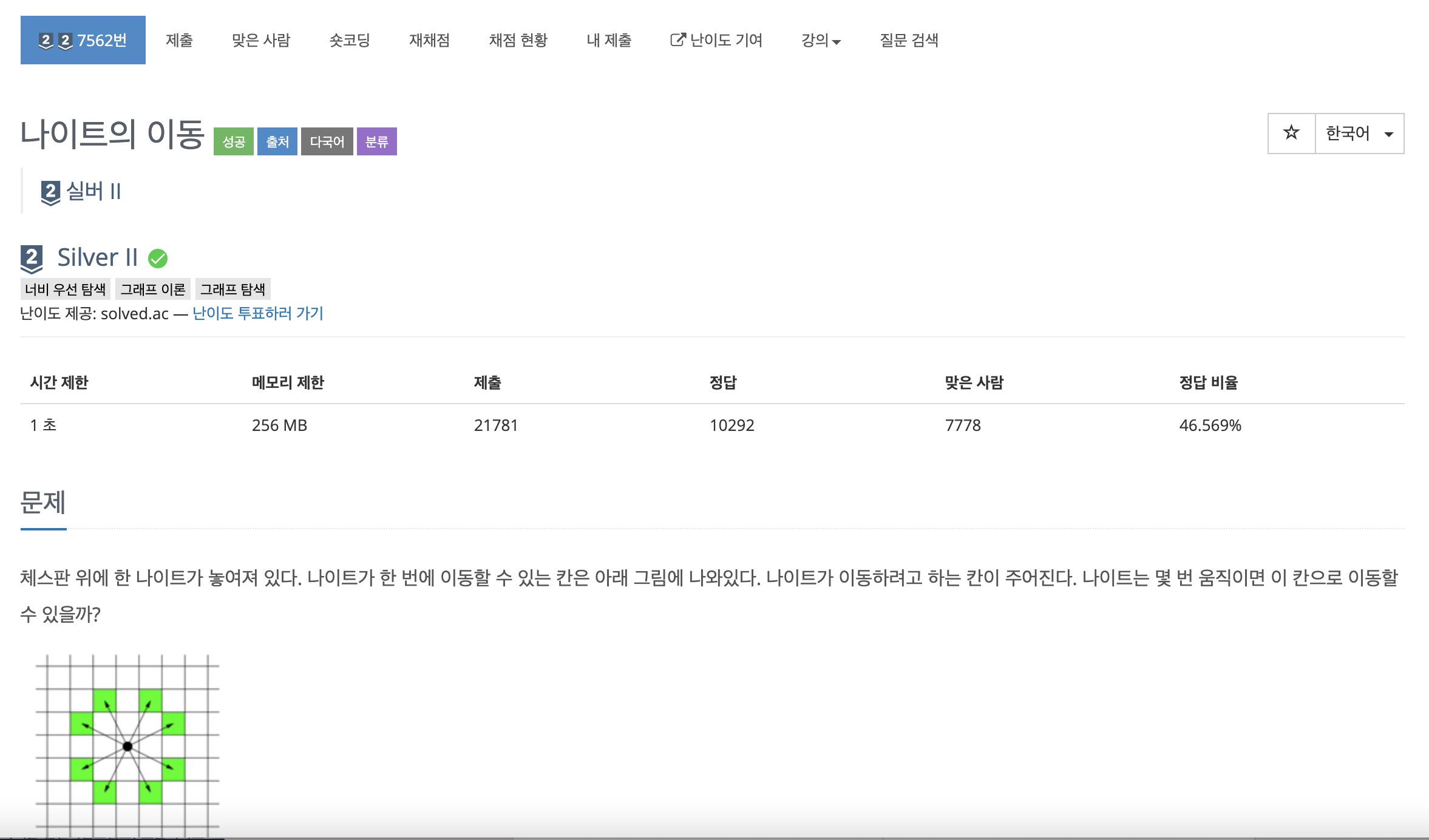 [백준 7562] 알고리즘 88일차 : 나이트의 이동